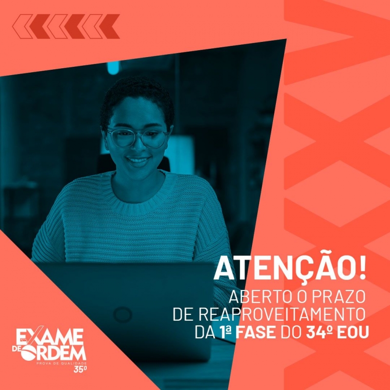 Começa nesta sexta-feira (17/06) o período para pedido de reaproveitamento da 1ª fase do 34º Exame de Ordem Unificado (EOU). O prazo para requerer o reaproveitamento vai das 14h desta sexta-feira às 17h do dia 24 de junho de 2022, mediante as disposições contidas no Edital Complementar e no Edital de Abertura do 34º EOU, de 20 de abril de 2022.