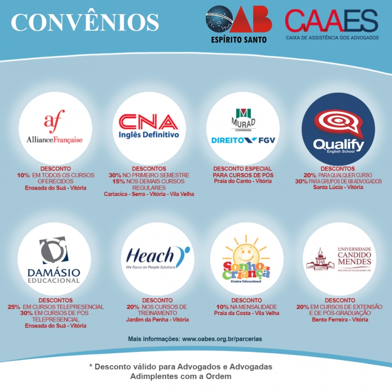 Para ficar por dentro desses e de outros convênios da OAB-ES, basta acessar o site: