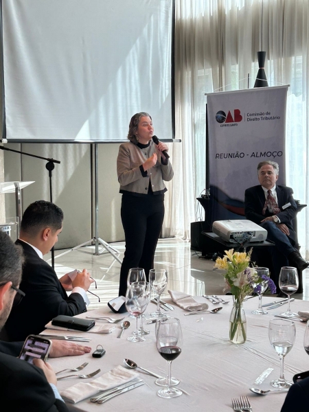 E a convite da OAB-ES, a Procuradora-Geral da Fazenda Nacional, Anelize Lenzi Ruas de Almeida, esteve presente debatendo sobre sobre Reforma Tributária. Essa foi a primeira vez que ela esteve presente como convidada em um evento da OAB.