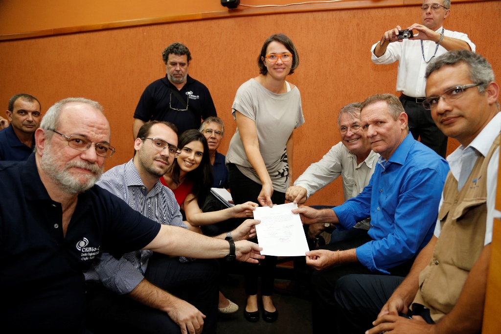 Os representantes da Ordem, do CRBio-02 e do CREA entregaram ao secretário de Estado de Saneamento, Habitação e Desenvolvimento Urbano, João Coser, um memorando de entendimento para formalizar a integração dos trabalhos.