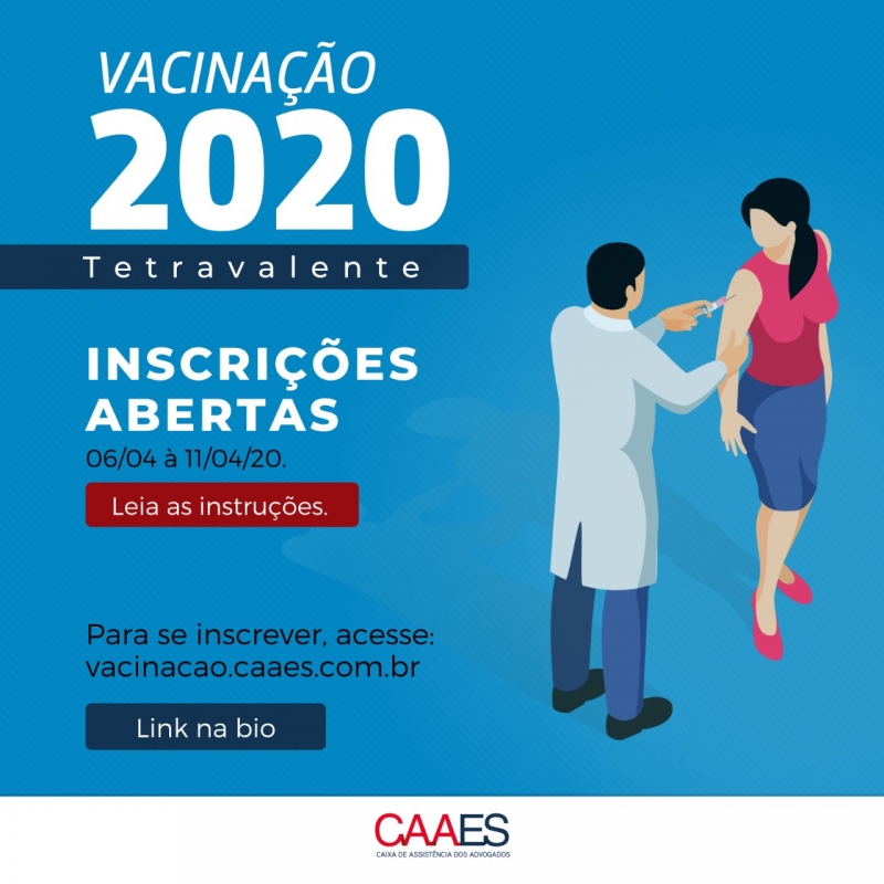 A Caixa de Assistência dos Advogados do Espírito Santo (CAAES) comunica que estão abertas as inscrições para a campanha de vacinação 2020.