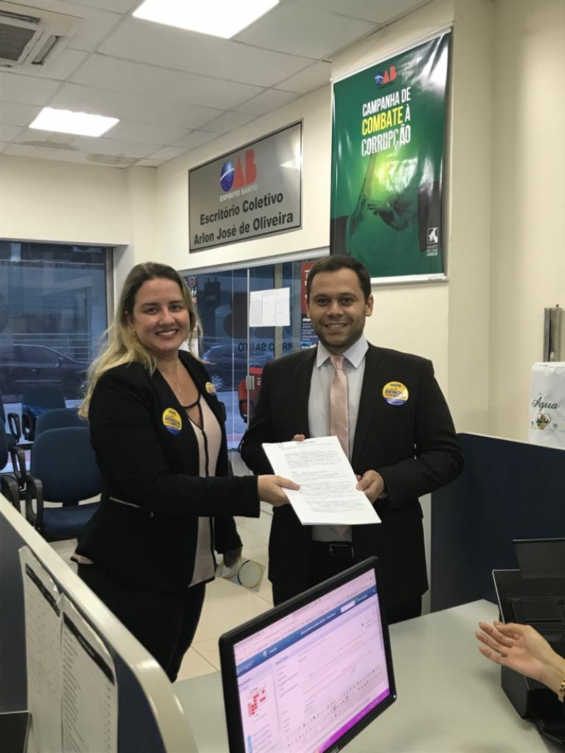 A chapa denominada “RENOVA OAB” requereu o registro de inscrição, na tarde desta segunda-feira (29), para concorrer à eleição para diretoria da 15ª Subseção de Nova Venécia no triênio 2019-2021. A chapa é encabeçada pelo advogado Lucas Paulo Gagno Nascimento.