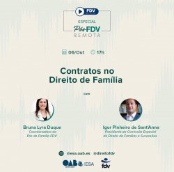 Pensando nisso, a FDV e a ESA/OAB-ES programaram para a próxima semana, do dia 05 a 09 de outubro, uma semana de lives FDV ao Vivo especial.