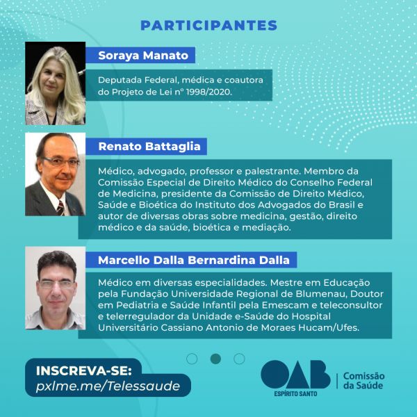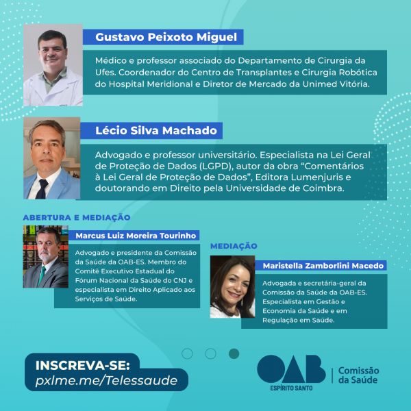 Comissão de Saúde da OAB-ES promove o evento “Telessaúde: Perspectivas de sua Implantação” no dia 29 de junho