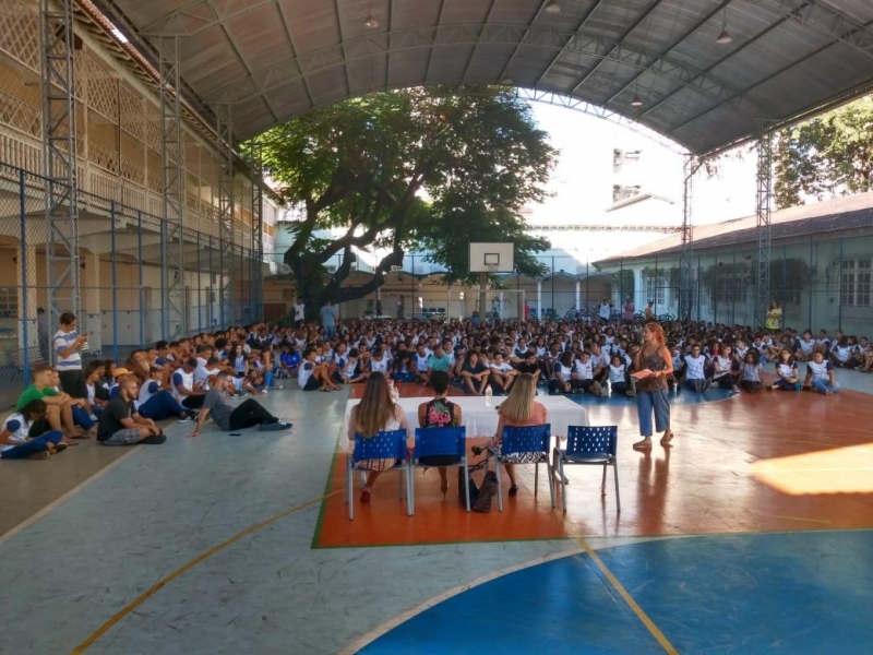 O feminicídio foi a pauta desta segunda-feira (11) na Escola Estadual Irmã Maria Horta com as comissões de Direitos Humanos e da Mulher Advogada da OAB-ES. O assunto foi discutido com uma fala mais acessível e informativa para o bom entendimento dos estudantes de 12 a 19 anos.