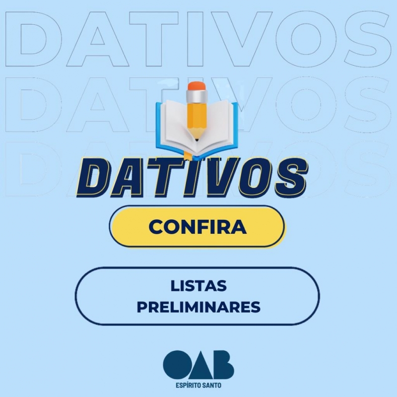 Seguindo o cronograma do processo de inscrição de advogados e advogadas dativos no Espírito Santo, a Ordem do Advogados do Brasil - Seccional Espírito Santo (OAB-ES) vem divulgar as listas preliminares dos inscritos, que serão disponibilizadas conforme forem sendo enviadas pelas Subseções.