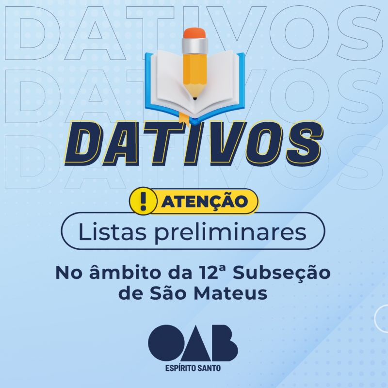 Confira as listas preliminares de inscritos para o cadastro de dativos no âmbito da 12ª Subseção de São Mateus