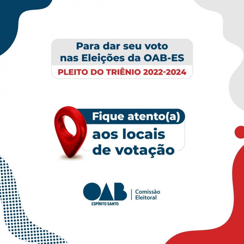 A Ordem dos Advogados do Brasil - Seccional Espírito Santo (OAB-ES) divulgou para a advocacia capixaba os locais de votação da Eleição Geral de 2021 para o triênio 2022-2024, que acontecerá no próximo dia 18 de novembro, das 9 às 17 horas.