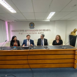 O evento contou com a presença do presidente da OAB-ES, José Carlos Rizk Filho; da vice-presidente, Anabela Galvão; da secretária-geral adjunta e corregedora, Silvia Maria Hansen; do ouvidor-geral, Vinicius Rosa; do diretor de Prerrogativas, Rodrigo de Souza;