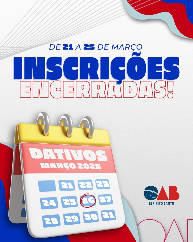 As inscrições para atuar como dativos nas comarcas do Poder Judiciário do Espírito Santo foram encerradas nesta terça-feira, dia 25 de março, às 18h.
