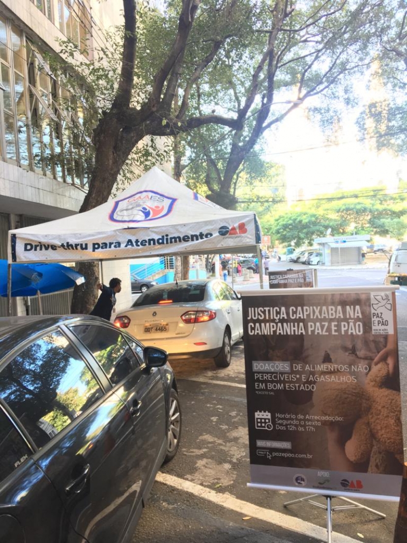 Drive-thru da OAB-ES será um dos pontos para doações da campanha Paz e Pão