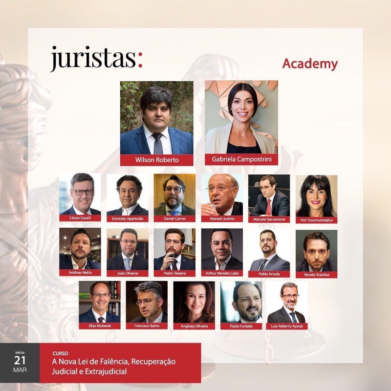 A Jurista promoverá um estudo profundo sobre as recentes alterações na Lei de Recuperação de Empresas e Falência introduzidas pela Lei nº 14.112, de 24 de dezembro de 2020. Estarão presentes os maiores especialistas da área de insolvência, professores com profundo conhecimento, vasta experiência, alguns, inclusive, participaram ativamente no processo legislativo, na confecção do texto da lei e sua aprovação.
