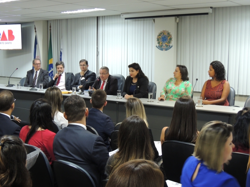 Também compuseram a mesa na solenidade a secretária-geral adjunta, Érica Neves, o diretor tesoureiro da CAAES, Ivan Neiva Neves Neto, a presidente da CEAIC, Natálya Assunção, a advogada, integrante da CEAIC, Claudia Isadora Santos Nascimento e o advogado Geraldo Elias Brum.