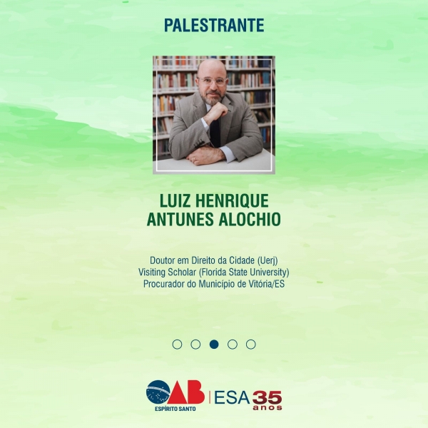 A aula com tema "O Direito da Saúde e desafios no Direito Comparado" será ministrada pelo advogado e doutor Luiz Henrique Antunes Alochio te rará sua visão de acordo com os estudos que têm desenvolvido na Flórida State University. O evento terá ainda a participação do advogado Cláudio Aparecido Ribas da Silva, que tem larga experiência na área da saúde Suplementar e o biólogo e geneticista Rodrigo Pratte Santos, que levará uma abordagem técnica, enriquecendo esse encontro que proporcionará uma visão multidisciplinar