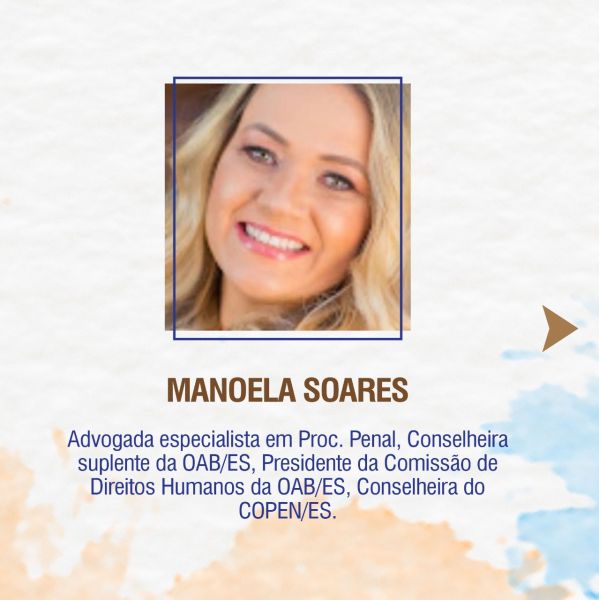As convidadas serão a assistente social da Primeira Vara da Infância e da Juventude de Vila Velha e professora universitária do curso de Serviço Social da Unisales e Emescam, Jaqueline da Silva; a advogada trabalhista e familiarista e Conselheira Estadual da OAB-ES, Vanessa Brasil e a advogada especialista em Processo Penal e presidente da Comissão de Direitos Humanos da OAB-ES, Manoela Soares.