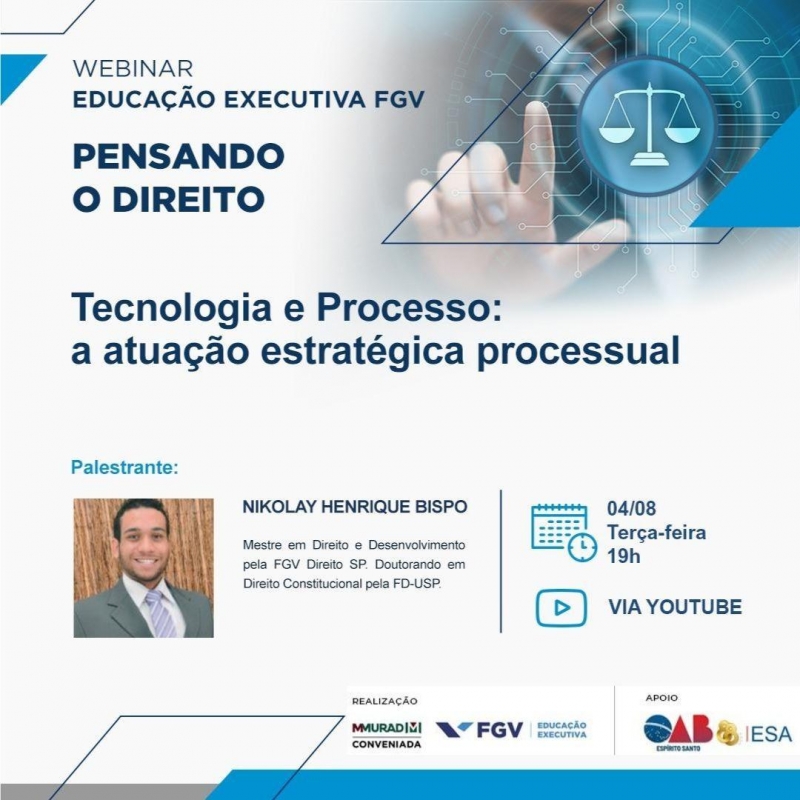 ESA-ES, OAB-ES e MMurad|FGV convidam para webinar Tecnologia e Processo: a atuação Estratégica Processual