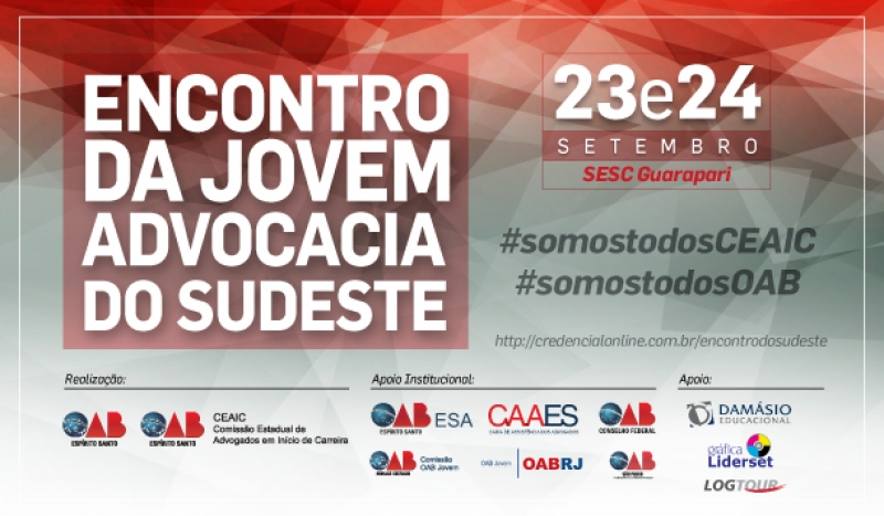 O Encontro é uma iniciativa da OAB-ES, por meio da Comissão Estadual de Advogados em Início de Carreira (CEAIC), com apoio do Conselho Federa e das Seccionais de Minas Gerais, Rio de Janeiro e São Paulo.