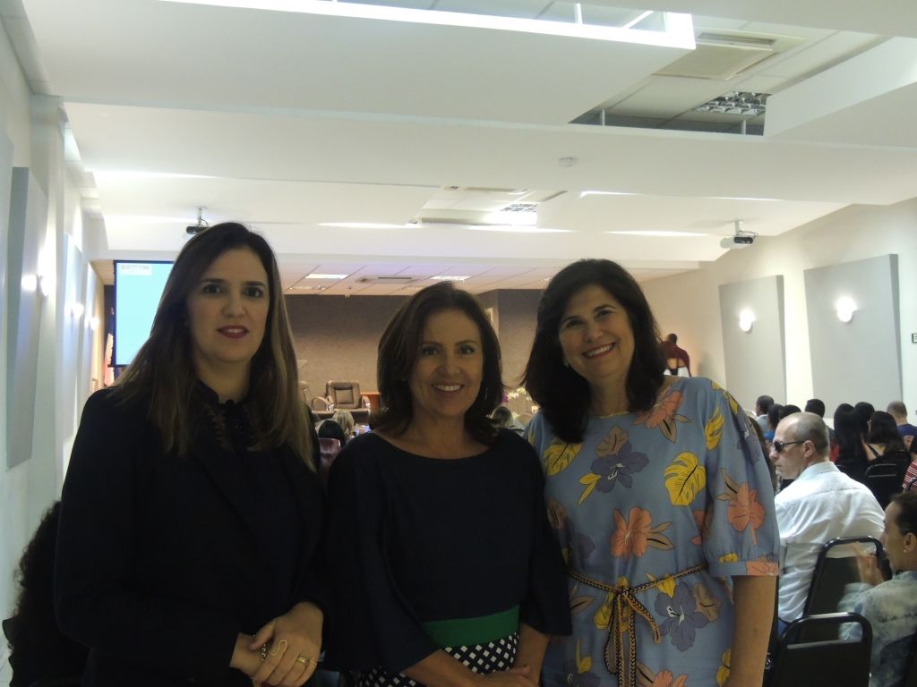 As advogadas Flávia Murad, presidente da Comissão de Direitos Humanos da OAB-Es; Simone Silveira, vice-presidente da OAB-ES e a advogada Magda Barreto prestigiando o seminário “Elas nas Profissões 2”.