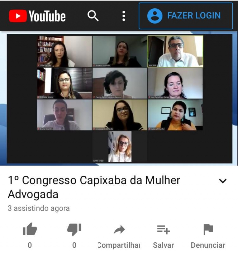 O congresso está sendo transmitido pelo Zoom no ID 939.4496.1951 e pelo canal OABTV ES no YouTube.