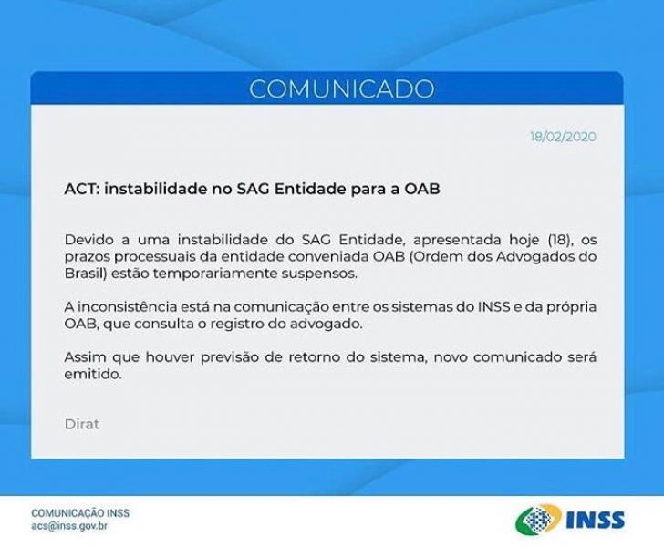 A inconsistência está na comunicação entre os sistemas do INSS e da própria OAB, que consulta o registro de advogado.