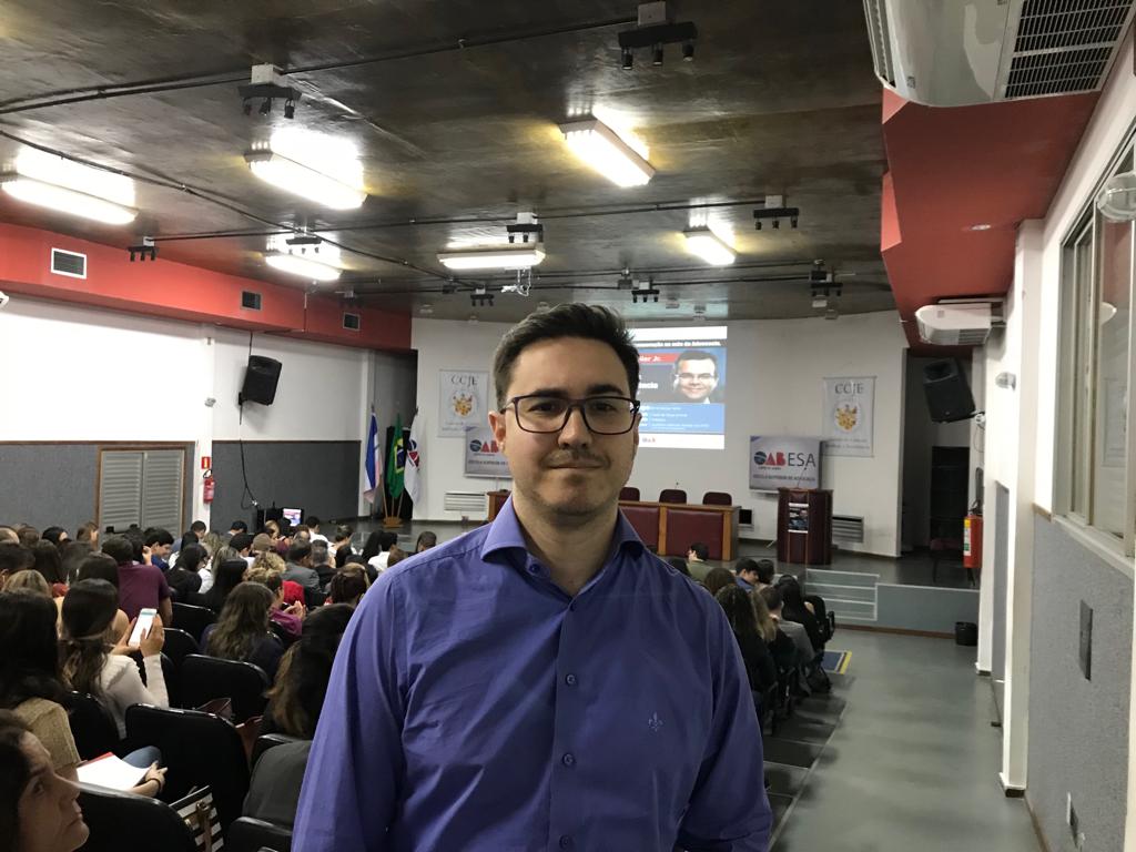 “Vocês não estão aqui pra ouvir o livramento da Ufes. Vocês estão aqui pra ouvir Fredie Didier. Com ele a voz. Com ele a palestra. Obrigada grande faculdade de Direito da Universidade Federal do Espírito Santo. Eu tenho muito orgulho de ter sido aluno da Ufes. Estou muito feliz desta parceria Ordem e Ufes porque há nove anos a Escola de Advocacia e a Ordem não são patrimônio mais de nenhuma faculdade. Há nove anos a nossa escola de advocacia e a nossa Ordem estão abertos a todas as faculdades de Direito. A todas!”