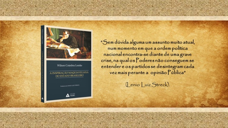 O livro A Inspiração Maquiaveliana do Estado Brasileiro, de Wilson Coimbra Lemke, é a indicação de leitura feita pela diretora de Direitos Humanos da OAB-ES, Verônica Cunha Bezerra. Segundo ela, “a leitura nos conduz a um passeio pelo universo de Maquiavel, de maneira detalhada e atenta. Estabelece um link entre a sua sustentação de Maquiavel com questões no nosso sistema, com pertinente competência. Ademais, o autor é um jovem que começa a pavimentar seu caminho na ciência do Direito, com esmero e responsabilidade, deixando patente a que veio”. Então, eu li e recomendo.