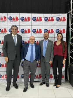 Da caravana também participaram a assessora do Conselho Seccional e coordenadora do evento, Raquel Barros Rodrigues Wiorek; o presidente da Subseção de Barra de São Francisco, Raony Scheffer; o presidente da Comissão de Acompanhamento Legislativo, Mazinho dos Anjos; o presidente da OAB Jovem, Baltazar Moreira Bittencourt, a presidente da Comissão de Estudo sobre Orientação e Prevenção de Drogas, Silvia Maria Lameira Hansen; o secretário adjunto, Zacarias Fernandes Moça Neto, e o membro da Comissão de Prerrogativas, Vinícius de Lima Rosa.
