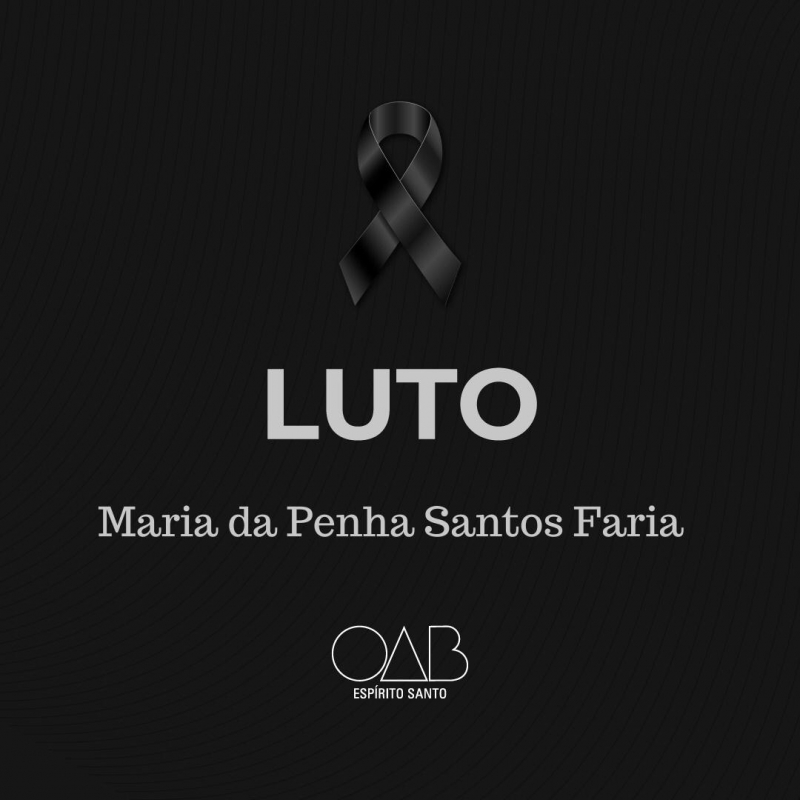 A Ordem dos Advogados do Brasil - Seccional Espírito Santo (OAB-ES) comunica com imenso pesar o falecimento da Dra. Maria da Penha Santos Faria.