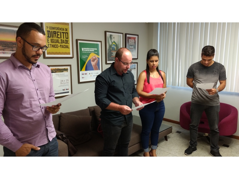 A OAB-ES realizou, nesta terça-feira (14), entrega administrativa de carteiras para quatro novos advogados na sede da Seccional. Na ocasião, o presidente da Ordem, Homero Mafra, concedeu a palavra à vice-presidente Simone Silveira, que fez um breve discurso falando sobre ética na profissão e também citando a importante atuação da OAB-ES, buscando o diálogo para a resolução do impasse durante a paralisação da Polícia Militar.
