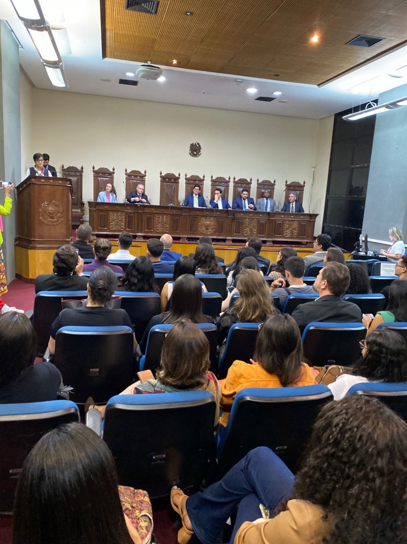 “É uma honra participar da mesa de abertura deste Seminário do Estado Democrático de Direito. Essa é uma pauta do espaço público de interesse coletivo. 2023 é um ano de reafirmação e celebração do Estado Democrático de Direito no Brasil com a comemoração da Constituição Cidadã. A história presente nos convoca a pensar. Nos convoca a saber quem somos, a entender o que queremos e apresentar o destino que nos futuro queremos apresentar”, afirmou Sayuri Otoni.