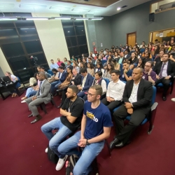 Juristas, estudantes e representantes do poder Legislativo participaram na noite de ontem do Seminário “A importância do Estado Democrático de Direito”, realizado pela OAB-ES por meio da Comissão de Estudos Constitucionais em conjunto com a Assembleia Legislativa do Espírito Santo (Ales) e o Centro Universitário Faesa na noite de quarta-feira (25/10).