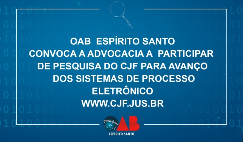 OAB-ES convoca advocacia a participar de pesquisa do CJF para avanço dos sistemas de processo eletrônico. Prazo termina hoje