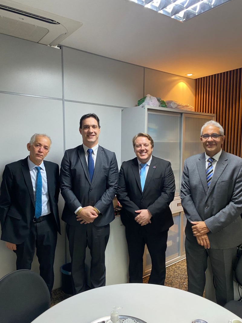 O secretário-geral da OAB-ES, Alberto Nemer e o presidente da 19ª Subseção de Afonso Cláudio, Gustavo Guimarães, foram recebidos pelos juízes auxiliares da Presidência do TJES, Ezequiel Turíbio e Daniel Peçanha, na tarde desta quarta-feira (19/07).