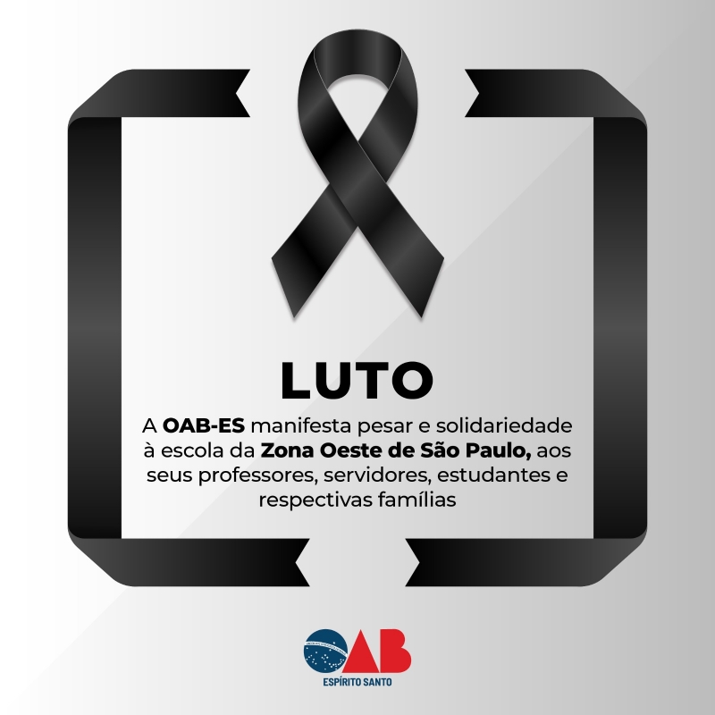 A ORDEM DOS ADVOGADOS DO BRASIL - SECCIONAL ESPÍRITO SANTO (OAB-ES), por meio de seu Presidente, e da COMISSÃO ESPECIAL DE DIREITO EDUCACIONAL (OAB-ES), por sua diretoria e membros, vem a público externar o mais profundo pesar em face da tragédia ocorrida nesta segunda-feira, 27 de março de 2023, em escola da Zona Oeste de São Paulo, e se solidariza com as famílias das vítimas, docentes, estudantes e amigos.