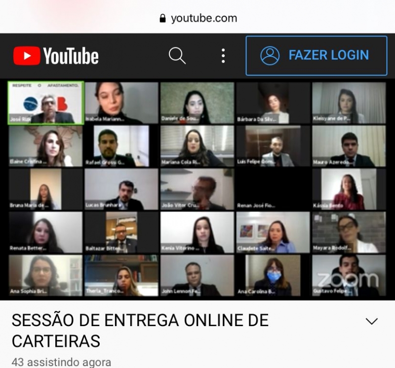 A OAB-ES entregou, de forma on-line, na tarde desta terça-feira (28/09), carteiras digitais para uma turma de 32 bacharéis em Direito que ingressaram na advocacia. Essa foi a 6ª solenidade on-line realizada pela Seccional este ano.