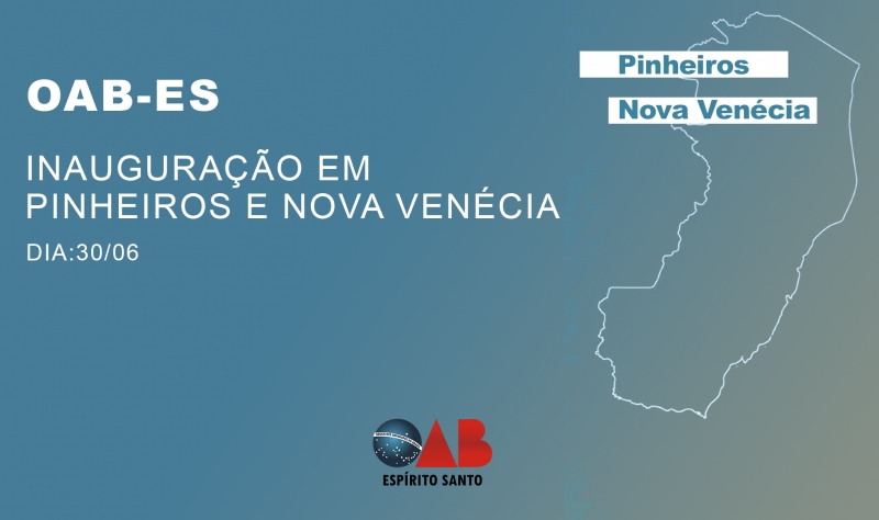 A próxima sexta-feira (30) será marcada por mais uma conquista da advocacia capixaba com a inauguração de novas instalações em Pinheiros e Nova Venécia. Somados são mais de 300 metros quadrados de estruturação. A realização é resultado do grande esforço empenhado pela Ordem dos Advogados do Brasil – Seção Espírito Santo (OAB-ES) e pela 15ª Subseção de Nova Venécia.
