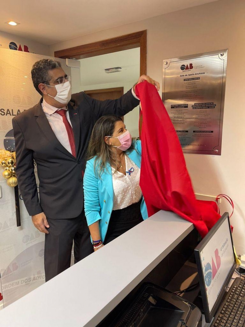 O presidente da OAB-ES, José Carlos Rizk Filho, e a presidente da 4ª Subseção de Guarapari, Mônica Goulart, inauguraram na tarde de terça-feira (23/11), a revitalização da sala de apoio para advogados no Fórum de Anchieta.