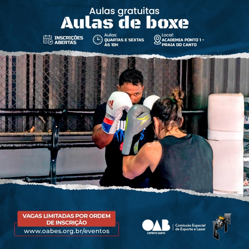 Mais um benefício para promoção de vida saudável para as advogadas e advogados capixabas. A OAB-ES lança o projeto Boxe, com aulas gratuitas na Academia Ponto 1, na Praia do Canto, em Vitória.