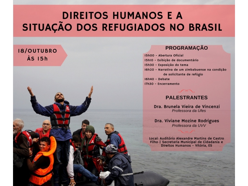 O evento contará com duas palestras das professoras Brunela Vieira de Vicenzi e Viviane Mozine Rodrigues. Será exibido um documentário gravado no Espírito Santo com refugiados que vieram para o Estado e, além disso, um refugiado iraquiano dará um depoimento.