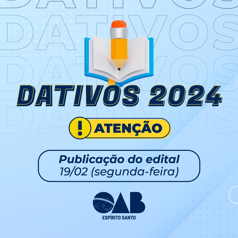 OAB-ES publicará Edital para inscrição de Dativos na segunda-feira (19/02)