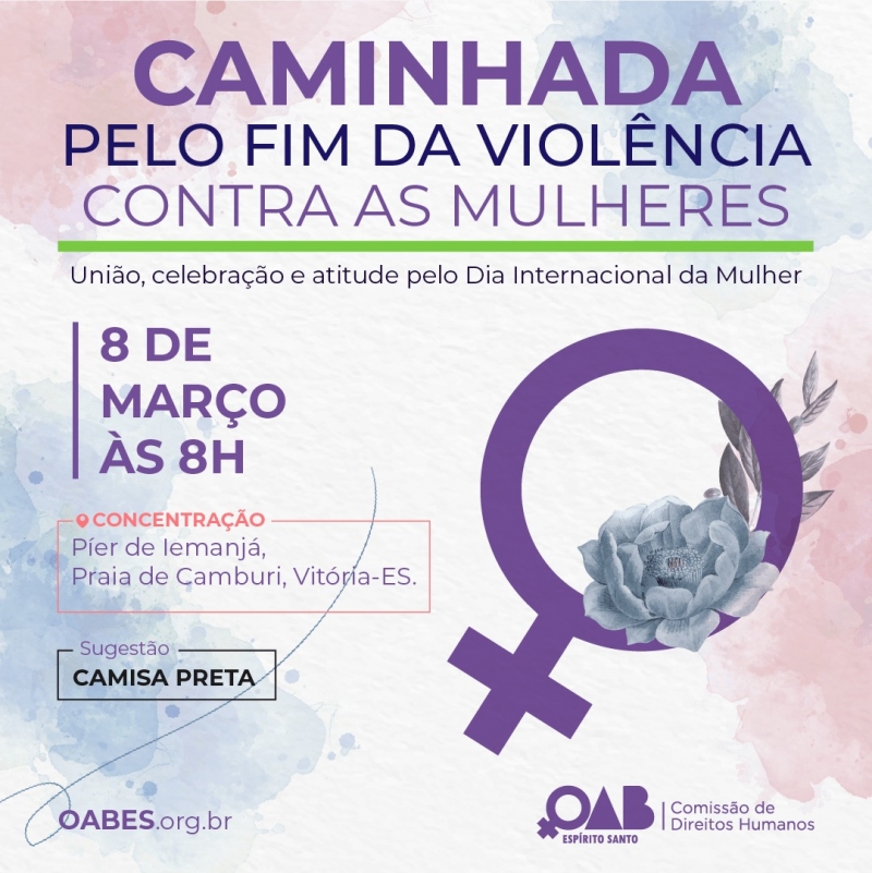 OAB-ES realiza caminhada pelo fim da violência contra a mulher neste domingo (8/03)