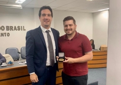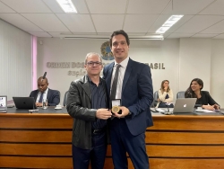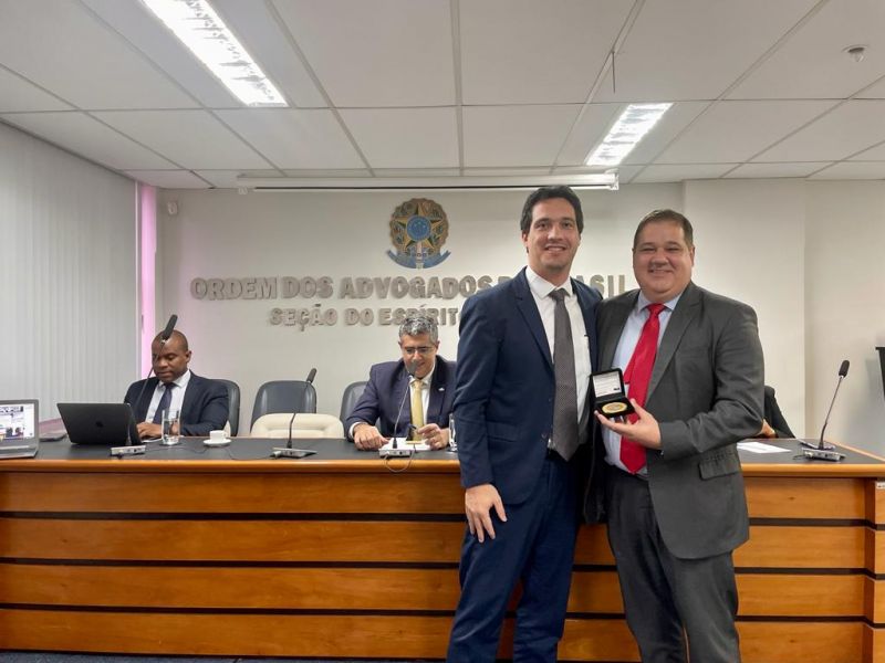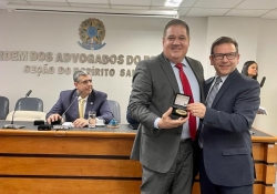 Também foi feita uma homenagem especial ao juiz titular do Pleno do Tribunal Regional Eleitoral (TRE-ES) pela Classe dos Juristas, Lauro Coimbra, que recebeu das mãos do secretário-geral Alberto Nemer Neto uma medalha.
