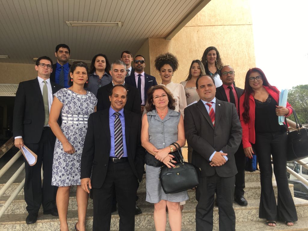 Advogados e advogadas na escadaria do Fórum de Cariacica, onde