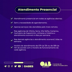 A OAB-ES, por meio da Comissão de Direito Previdenciário, realiza a audiência pública, “Atendimento Presencial X Guichê Virtual”, no próximo dia 23 (segunda-feira) às 18h30.