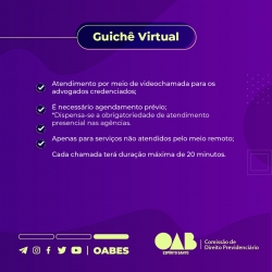 A Ordem convidou o advogado previdenciarista e presidente da Comissão de Direito Previdenciário da OAB-MG, Farlandes Guimarães, para prestar esclarecimentos sobre os benefícios do guichê virtual. Já a presidente da Comissão de Direito Previdenciário, Livia Nogueira, falará sobre os benefícios do atendimento presencial.