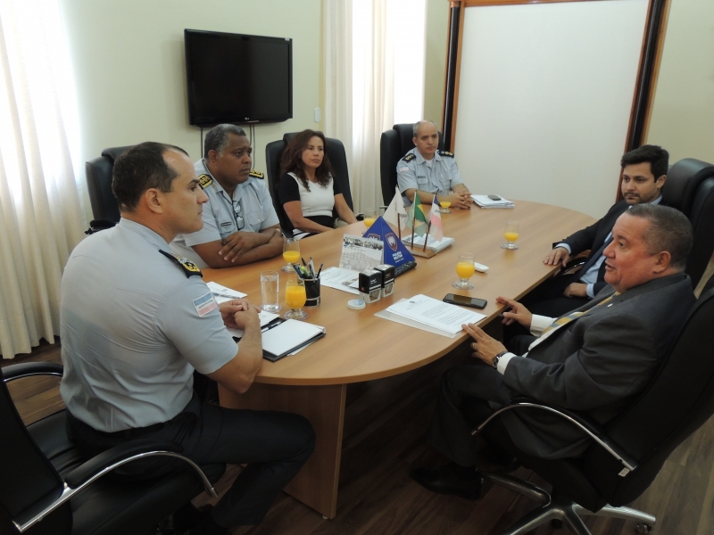 O presidente da Seccional Homero Junger Mafra, a secretária geral adjunta Simone Silveira e o presidente da Comissão de Direitos e Prerrogativas da Ordem Glauco Barbosa dos Reis estiveram em reunião com o comandante geral da corporação, coronel Marcos Antônio Souza, o diretor da corregedoria, coronel Ilton Borges e com o subcomandante, coronel Cristhian Tatagiba.