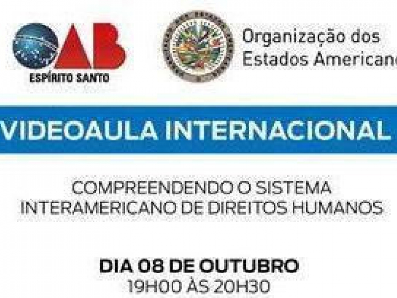 A Ordem dos Advogados do Brasil – Seção Espírito Santo (OAB-ES) transmite nesta quarta-feira (08), em tempo real, uma videoaula sobre o Sistema Interamericano de Direitos Humanos da Organização dos Estados Americanos (OEA). A palestra será ministrada pelo advogado e doutor em ciências jurídicas Mario López-Garelli.