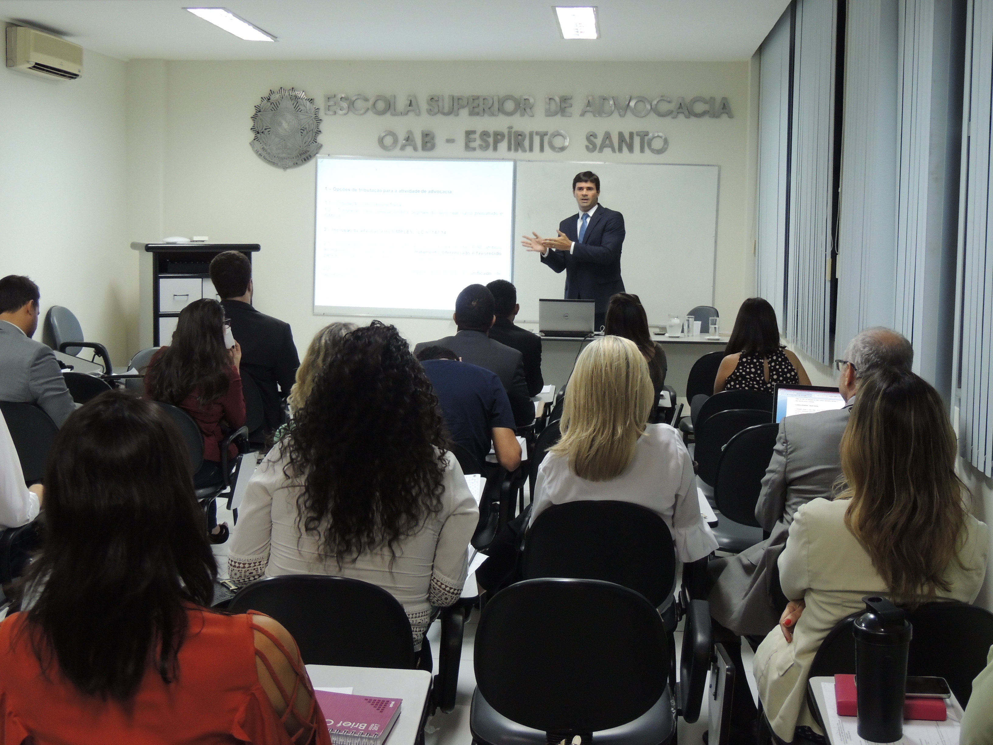 O curso sobre os impactos do novo CPC no processo administrativo tributário nessa quarta-feira (22) na ESA/OAB-ES contou com uma breve abertura do presidente da Seccional, Homero Mafra, que afirmou que a sociedade unipessoal de advogado foi uma grande conquista da advocacia.