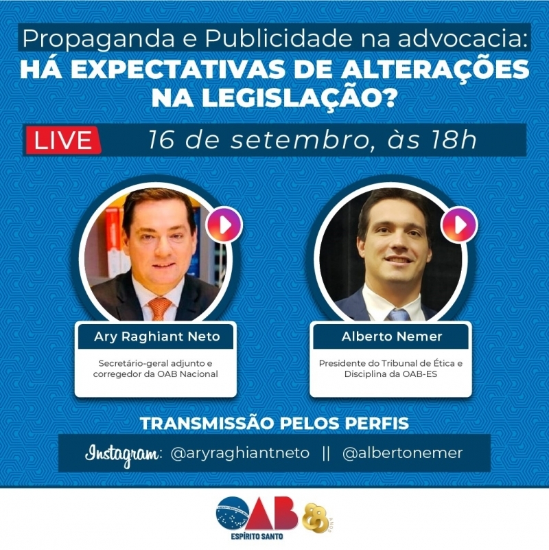 A live foi transmitida no instagram e eles abordaram o que pode ser mudado (ou não) na legislação sobre publicidade e propaganda na advocacia. Advogados, membros dos Tribunais de Éticas e de Comissões de diversas Seccionais do Brasil acompanharam o debate ao vivo.