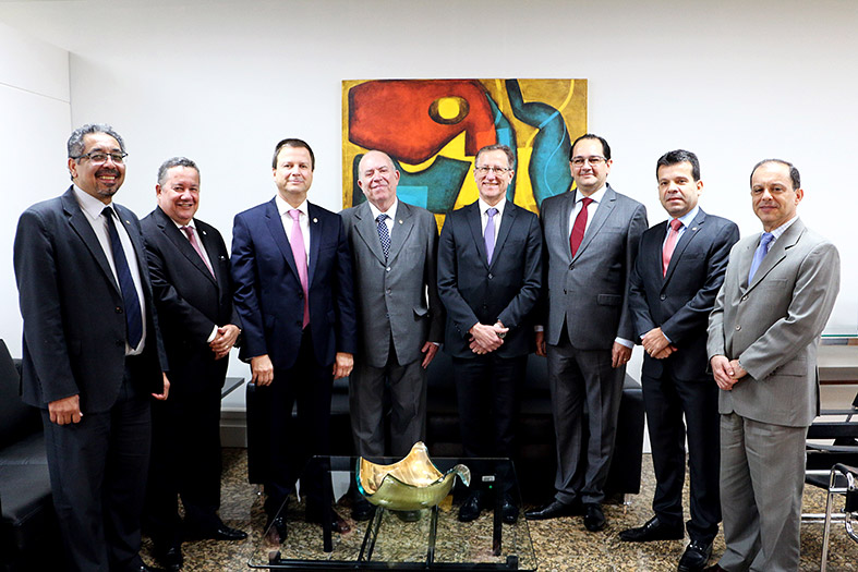 Eles foram recebidos pelo presidente do TJ e pelos juízes assessores especiais Paulo Cesar Carvalho e Fábio Brasil Neri.